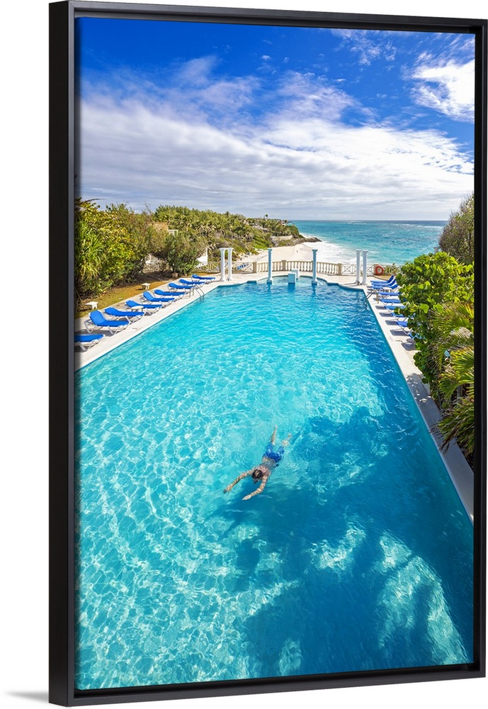 <p>Barbados, Saint Philip, Tropics, Antilles, Lesser Antilles, Windward Islands, Caribbean, West Indies, Crane beach in the background. The pool at The Crane resort in the foreground.</p>