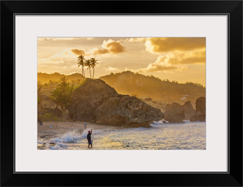 <p>Barbados, Saint Joseph, Tropics, Antilles, Lesser Antilles, Windward Islands, Caribbean, West Indies, Fisherman at the Bathsheba Beach on the east coast of the island.</p>