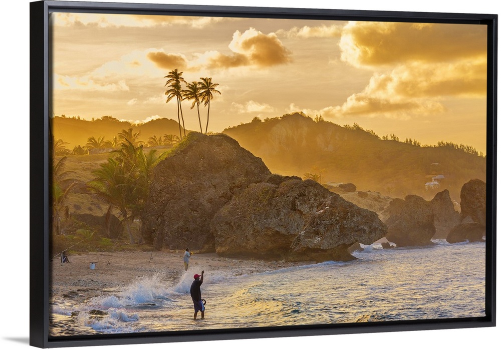 <p>Barbados, Saint Joseph, Tropics, Antilles, Lesser Antilles, Windward Islands, Caribbean, West Indies, Fisherman at the Bathsheba Beach on the east coast of the island.</p>