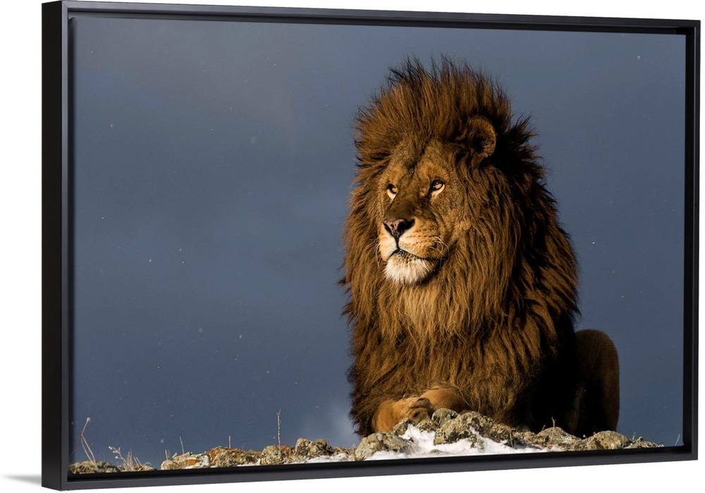 <p>Magnificent and rare captive male Barbary lion (Panthera leo leo), posing regally near Bozeman, Montana, USA. Native to Morocco and Tunisia, it is now extinct in the wild.</p>