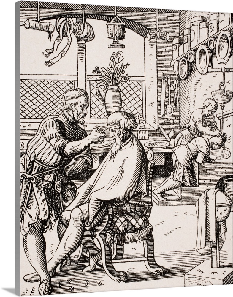 <p>Barber. 19th Century Reproduction Of 16th Century Woodcut By Jost Amman.</p>