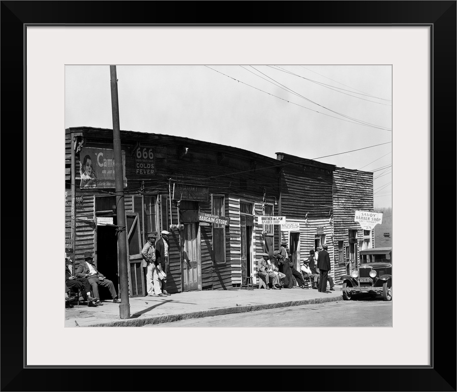 <p>A row of African American barbershops in Vicksburg, Mississippi. Photograph, by Walker Evans, 1936.</p>