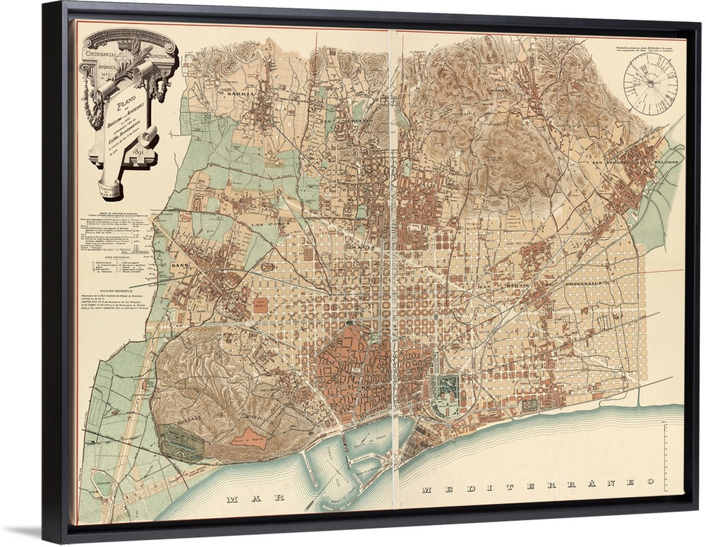 Art Graphic Art Maps Antique Maps Maps by City Spain Barcelona Vintage Art