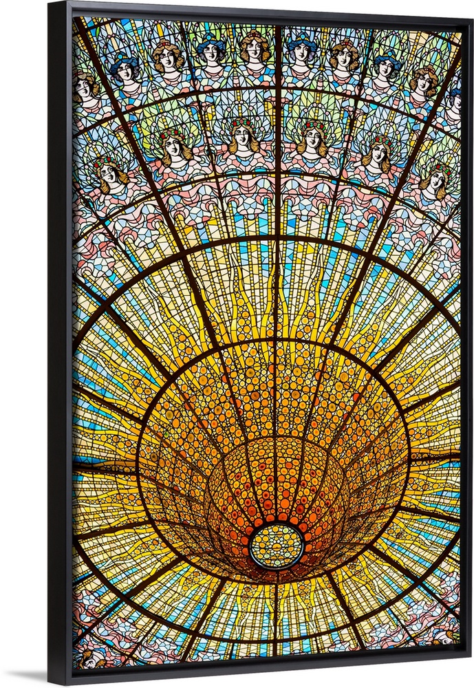 <p>Barcelona, Catalonia, Spain, Southern Europe. The unique architecture at the Palace of Catalan Music (Palau de la Musica Catalana).</p>