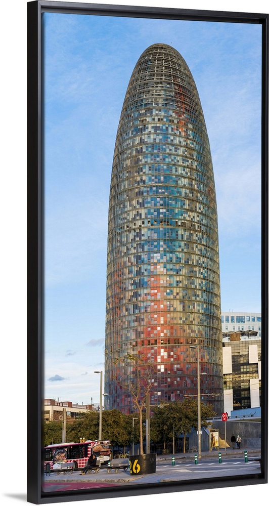 <p>Barcelona, Catalonia, Spain, Southern Europe. Vertical panoramic view of the Agbar Tower.</p>