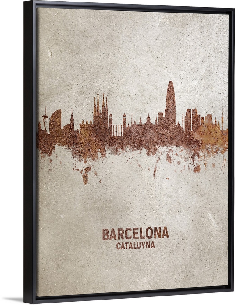 <p>Art print of the skyline of Barcelona, Spain. Rust on concrete.</p>