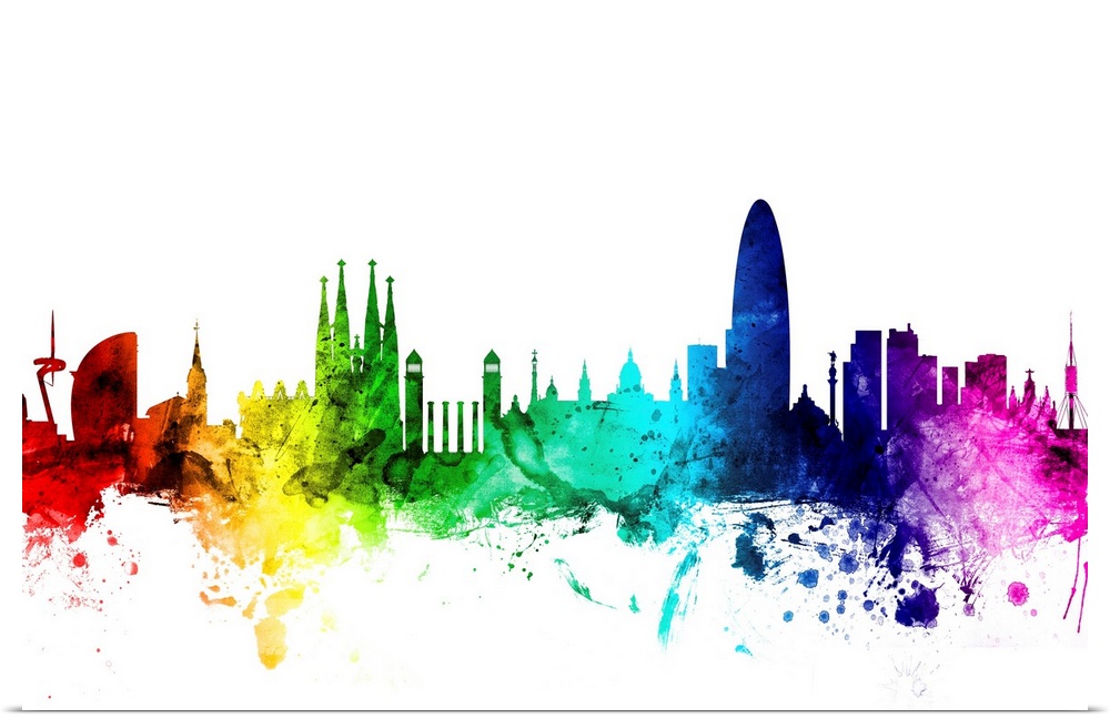 <p>Watercolor art print of the skyline of Barcelona, Spain.</p>