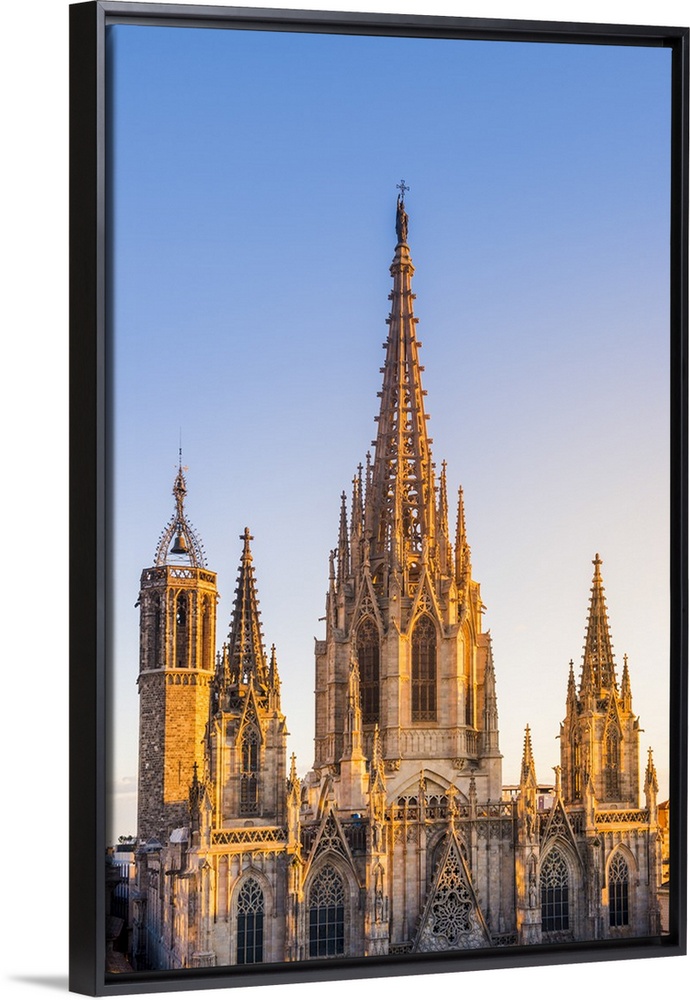 <p>Barcelona, Catalonia, Spain, Southern Europe. High angle view of the old Cathedral of the Holy Cross and Saint Eulalia at sunset.</p>