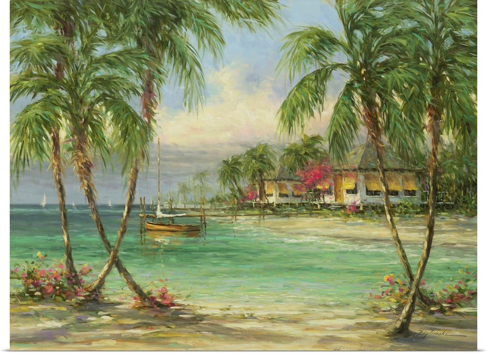 Architecture Cottages Art Contemporary Art Martin Figlinski Landscapes Beaches Seascapes Trees Palm Painting Transportation Boat
