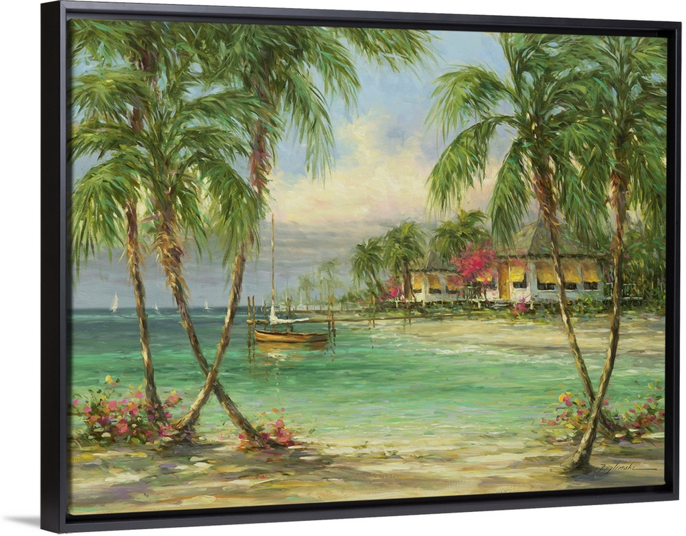 Architecture Cottages Art Contemporary Art Martin Figlinski Landscapes Beaches Seascapes Trees Palm Painting Transportation Boat