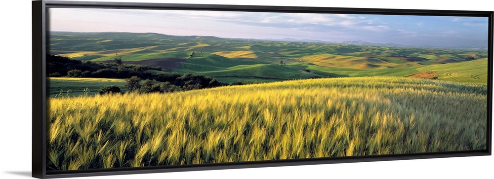 <p>Washington State, Colfax. Barley fields cover much of the rolling hills of the Palouse region of eastern Washington State.</p>
