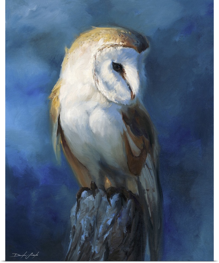 Art Blue Wall Art Contemporary Art Painting Dimitri Sirenko Wildlife Bird Owl