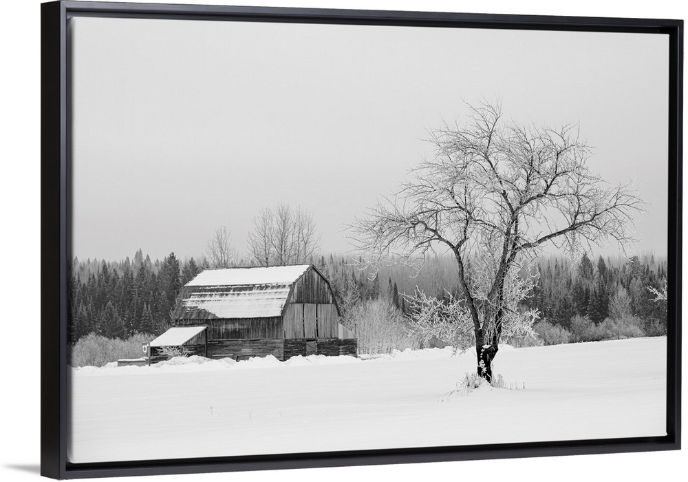 <p>Barn with tree in winter, Thunder Bay, Ontario, Canada</p>