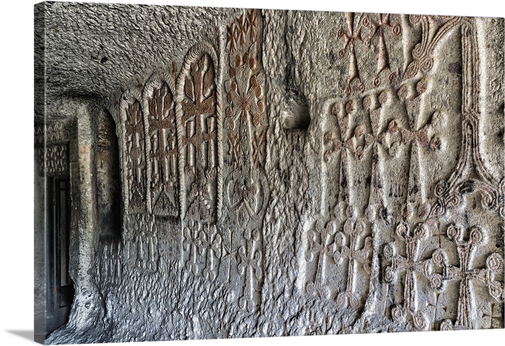 <p>Bas-relief in interior of 4th century Geghard Monastery, Kotayk Province, Yerevan, Armenia, Caucasus</p>
