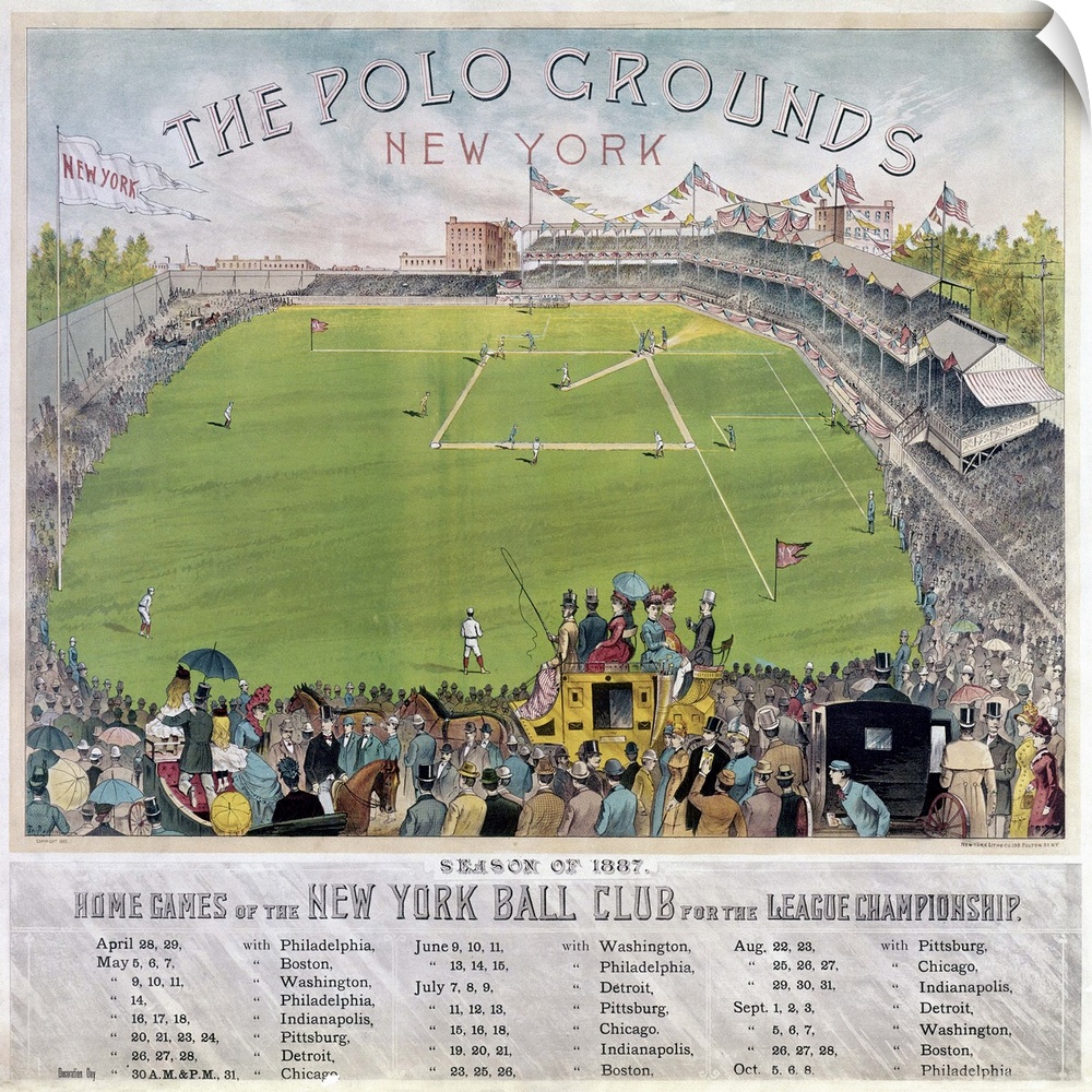 <p>The Polo Grounds in Upper Manhattan, New York, on a lithograph poster, giving the schedule of the New York Ball Club's games for the league championship in the 1887 season.</p>