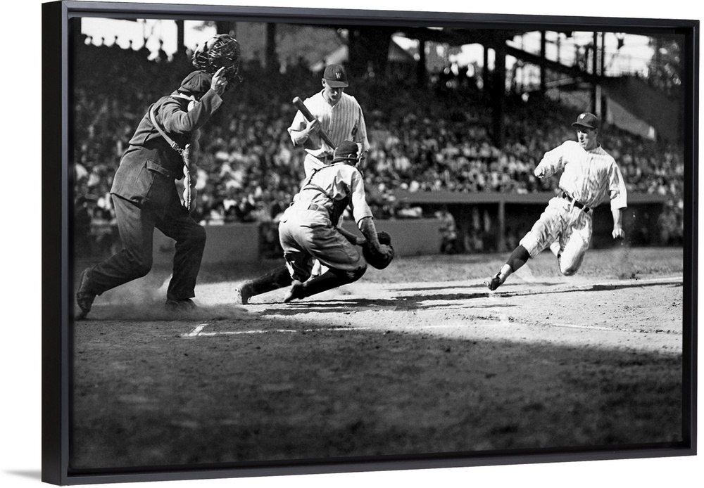 <p>Bucky Harris of the Washington Nationals sliding into home plate, 1925.</p>