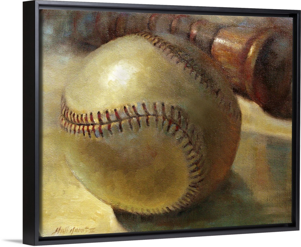 <p>Contemporary still-life painting of a baseball and bat.</p>