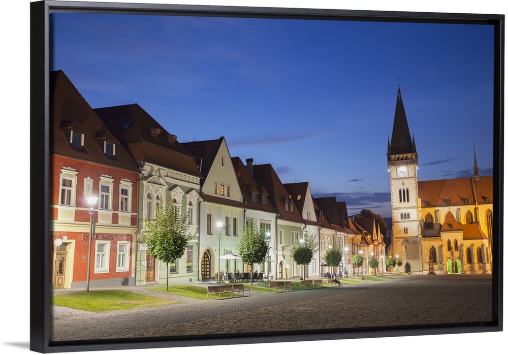 <p>Basilica of St Egidius in Radnicne Square at dusk, Bardejov (UNESCO World Heritage Site), Presov Region, Slovakia</p>