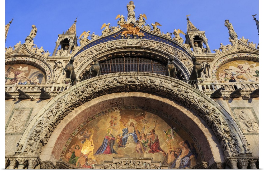 <p>Basilica San Marco golden exterior mosaics in late afternoon sun in winter, Venice, Veneto, Italy</p>