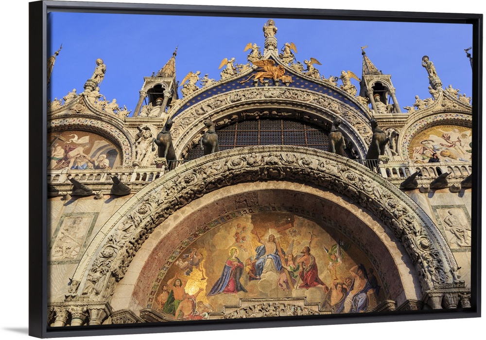<p>Basilica San Marco golden exterior mosaics in late afternoon sun in winter, Venice, Veneto, Italy</p>