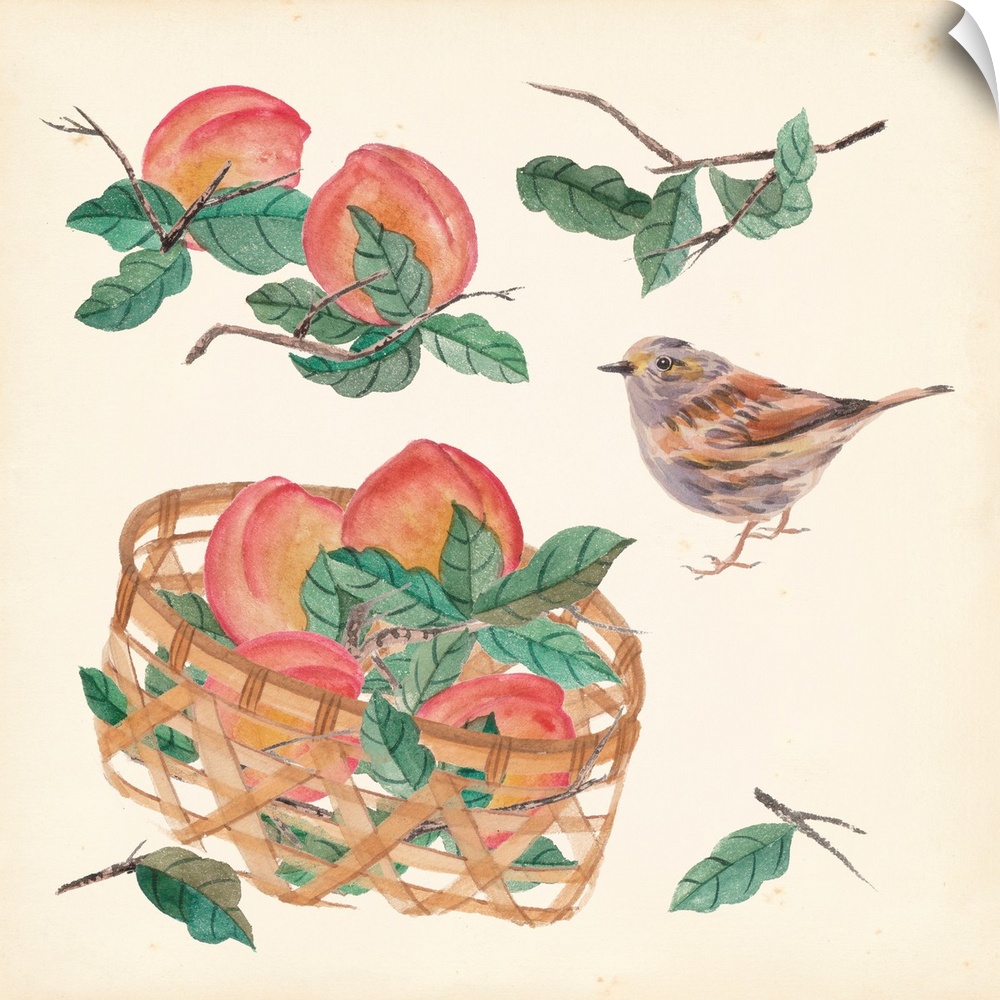 Art Decorative Art Food and Drink Food Fruit Peach Painting Melissa Wang Wildlife Bird