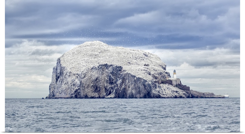 <p>Gannet colony at Bass Rock seabird sanctuary, situated in the Firth of Forth, three miles east of North Berwick, Scotland.</p>