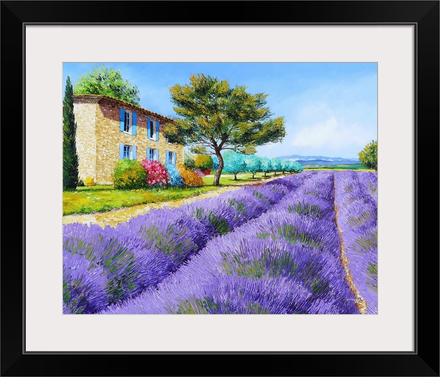 <p>Contemporary painting of a rural field of lavender crops.</p>