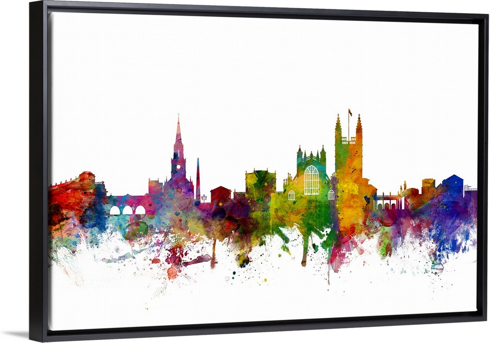 <p>Colorful watercolor splattered silhouetted of the Bath city skyline.</p>