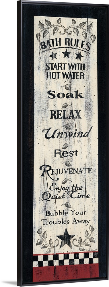<p>Decorative artwork of bath rules in a rustic country style.</p>