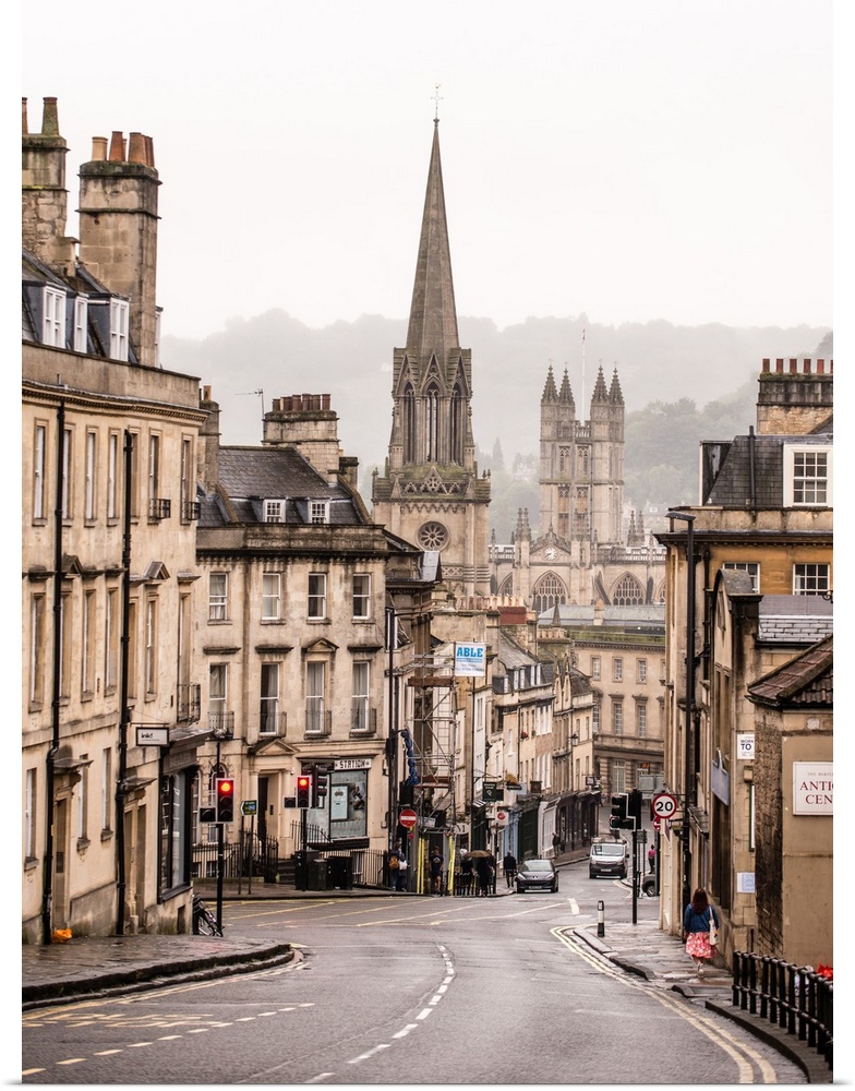 <p>Vertical photograph of the picturesque street view in the ancient city of Bath, England.</p>