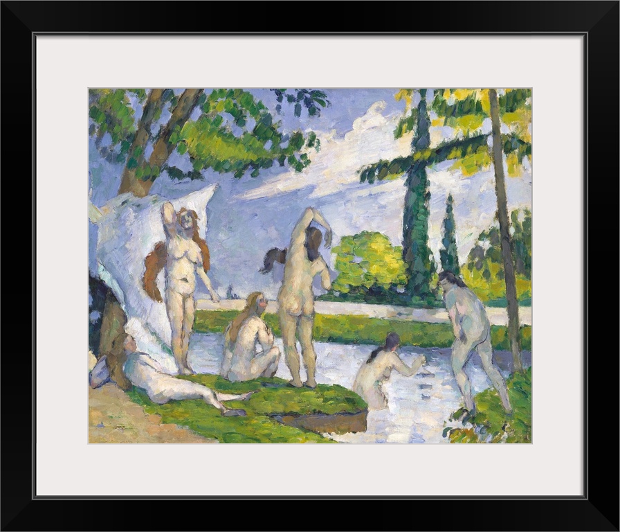 <p>This is one of Cezanne's first paintings of bathers, a subject that engaged him for the rest of his career. Although fascinated by the nude human figure, the artist worked slowly and was uncomfortable with female models, so he derived such scenes from his imagination and his rich knowledge of classical and Renaissance art. The rhythmic poses of the women, displaying their bodies from different angles, recur, with variations, in Cezanne's later work. However, he soon tempered the bright, high-keyed palette, favored by his Impressionist colleagues.</p>