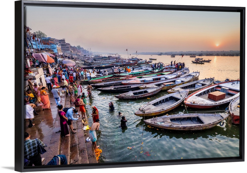 <p>Bathing in the Ganges River in Varinasi at sunrise</p>