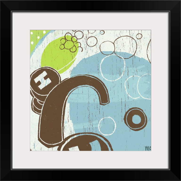 <p>Decorative artwork perfect for the home of a sink faucet and the bowl filled with water and soap bubbles.</p>