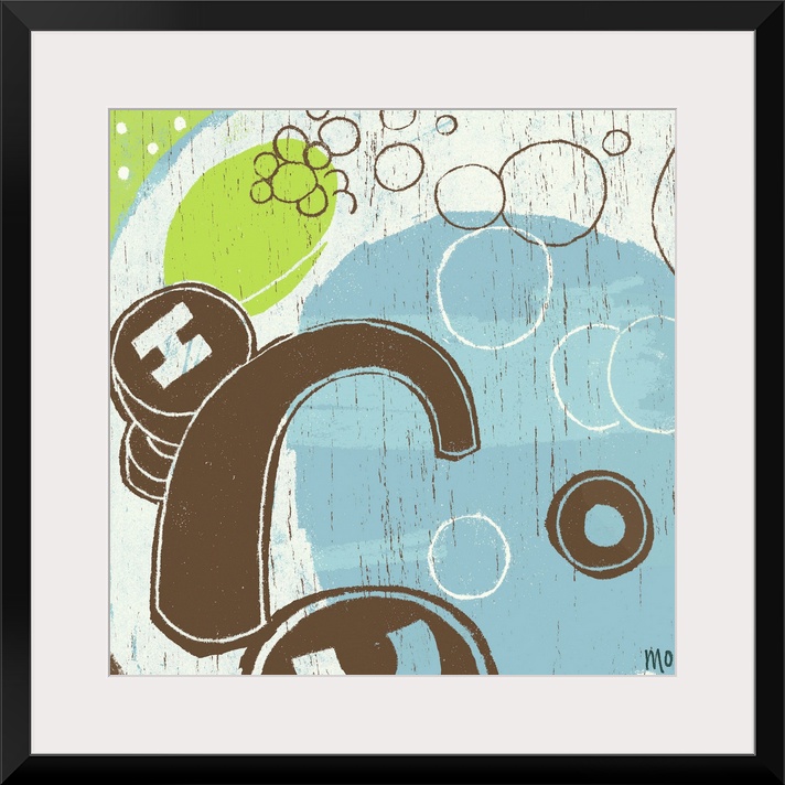 <p>Decorative artwork perfect for the home of a sink faucet and the bowl filled with water and soap bubbles.</p>