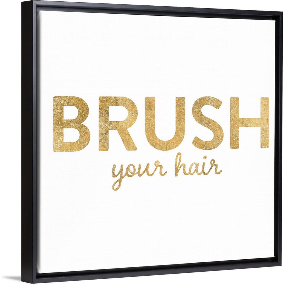 <p>"Brush Your Hair" written in metallic gold on a solid white background.</p>