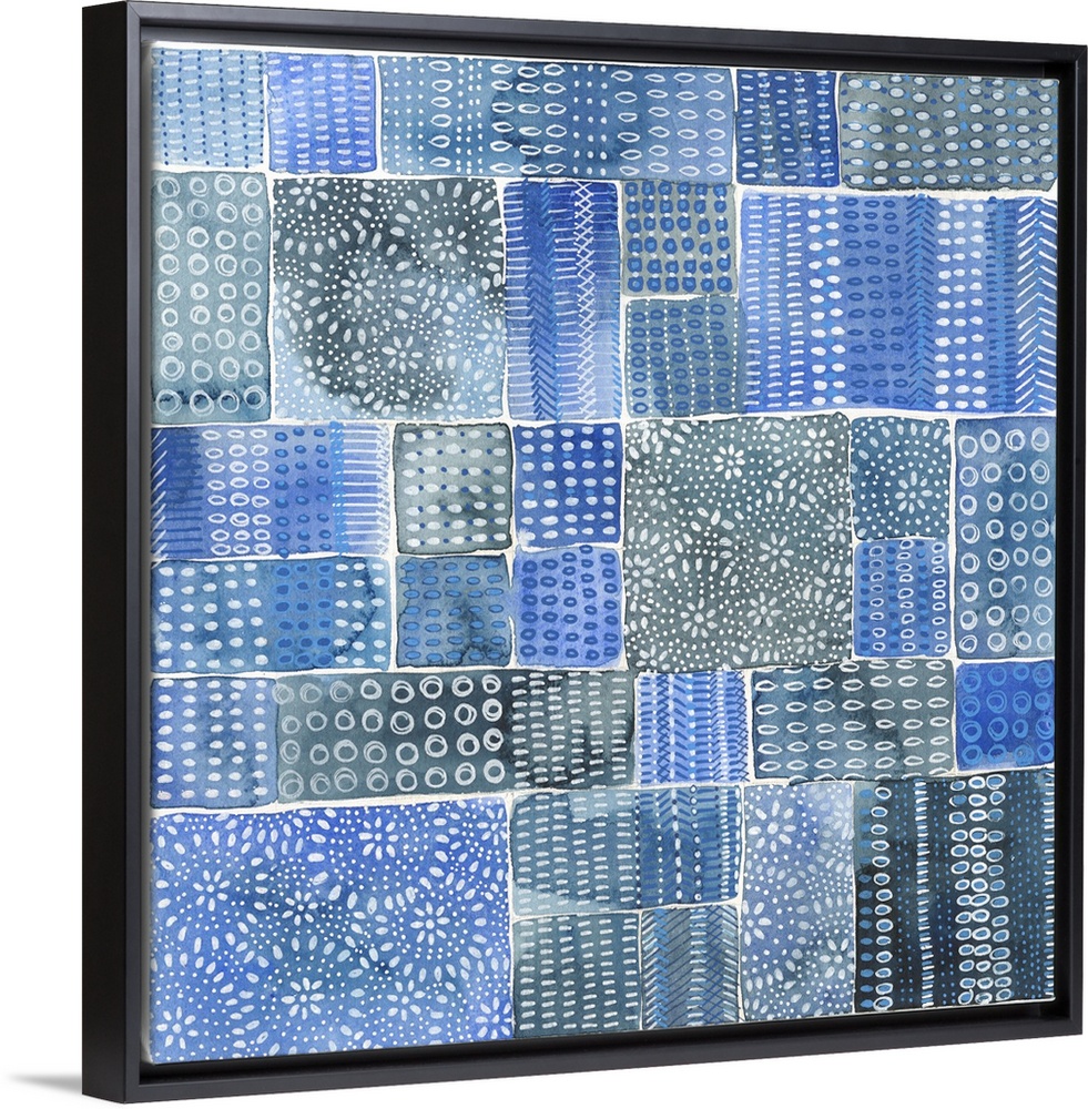 <p>Abstract batik patterns in shades of indigo, cobalt and gray, Shibori inspired.</p>