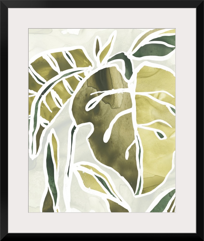 Art Art by Decor Style Bohemian Color Palettes Greenery Contemporary Art Plants and Flowers Decorative Art Florals Monstera Tropical Flowers Green Wall Art Olive Green Painting June Erica Vess