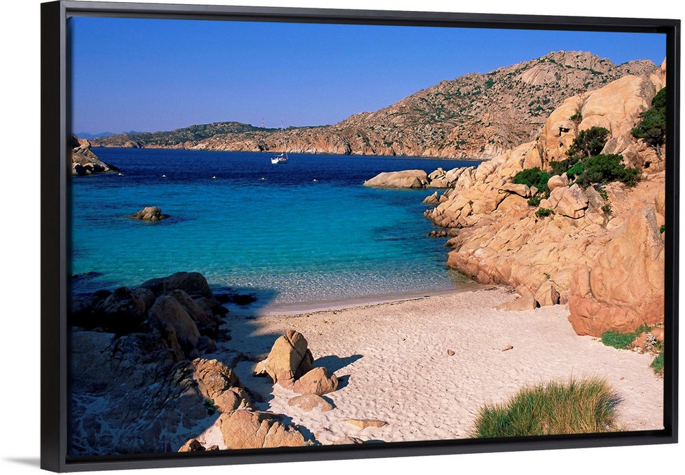 <p>Bay and beach, Cala Coticcio, island of Caprera, La Maddalena Archipelalgo, Sardinia, Italy, Mediterranean</p>