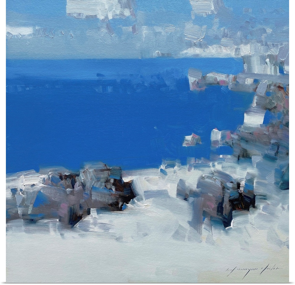 Art Coastal Living Room Blue Wall Art Contemporary Art Sun-bleached Mediterranean Beaches Seascapes Painting Vahe Yeremyan
