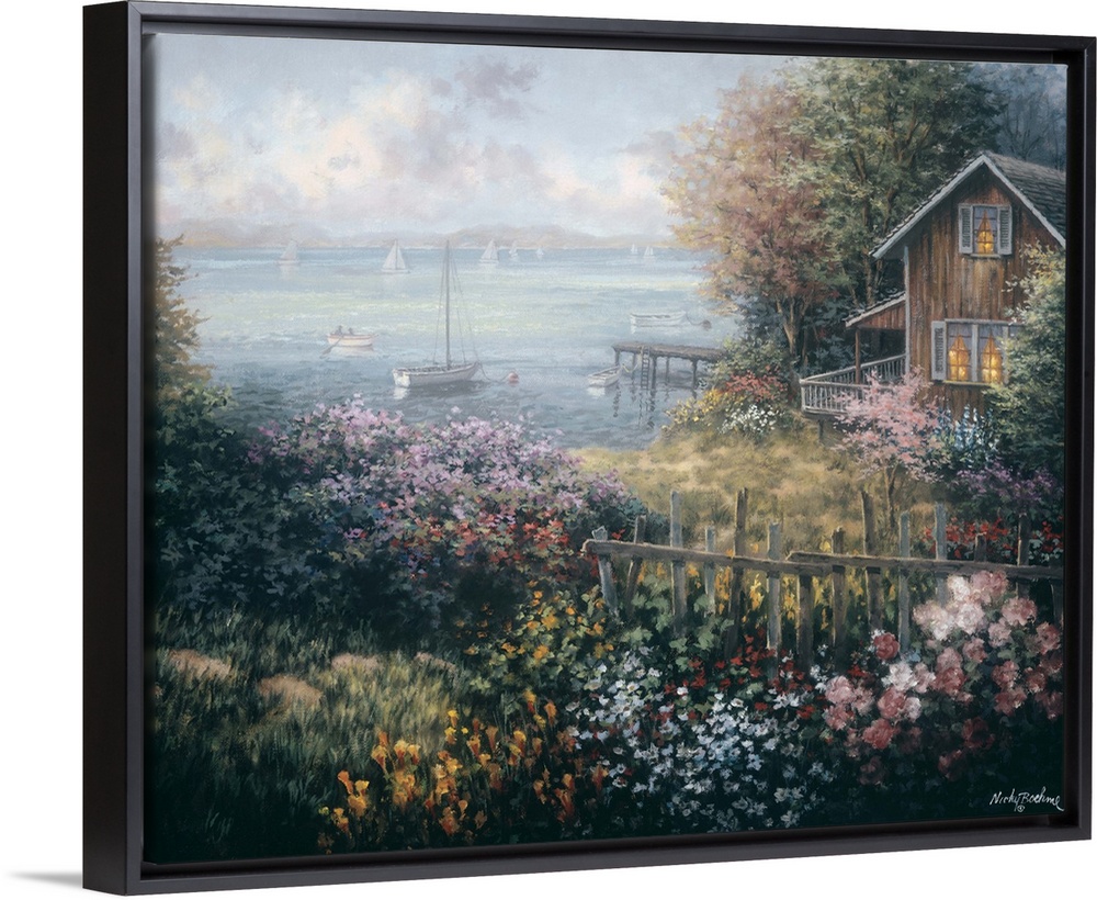 <p>Nicky Boehme imagines a world full of light and goodness in paintings that capture idyllic scenes of the laid-back life. Boehme is the consummate artist who painted as a young child and throughout her storied professional life. The dramatic interplay of light, color and mood create soothing scenery for wall art that will complement the atmosphere in quiet spaces such as bedrooms, reading nooks or dens. The world through the eyes and skilled brush strokes of Nicky Boehme glitters with romanticism and realism. You can almost taste the snow flurries covering a winter scene or hear the brook gurgling past a remote homestead.</p>