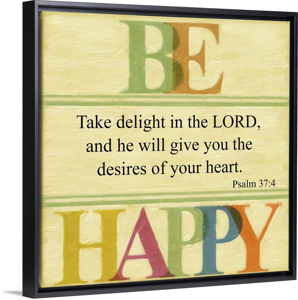 <p>Bible verse Psalm 37:4 framed by letters in rainbow colors.</p>