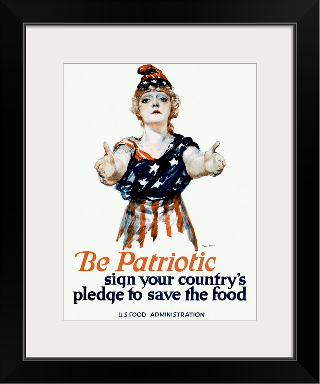 <p>Commissioned by the U.S. Food Administration during World War I, this striking poster features a woman dressed in the American flag, arms outstretched in appeal. It urges citizens to conserve food as a patriotic duty, reinforcing the home front's vital role in wartime success.</p>