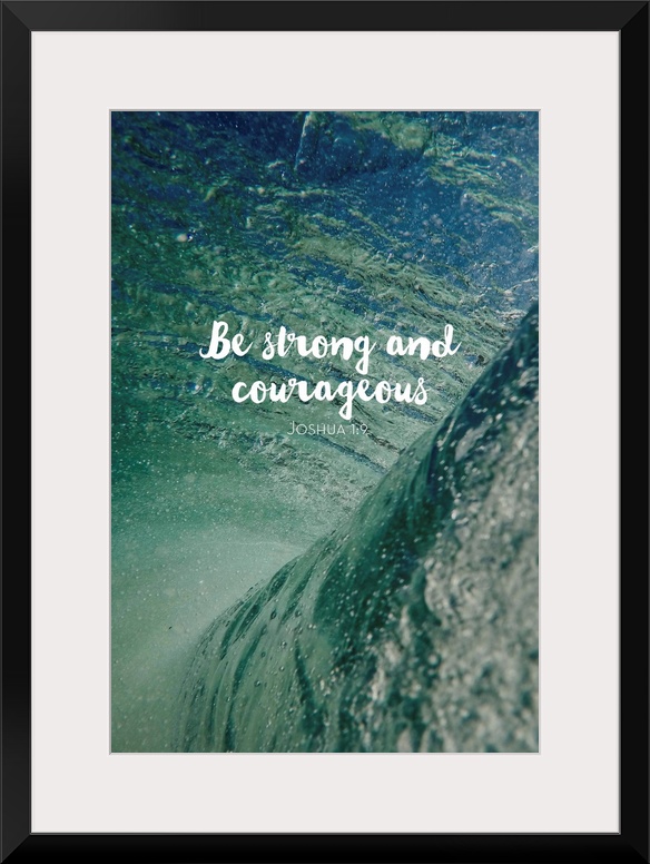 <p>Typography art of a bible verse from Joshua 1:9 over an underwater image of ocean waves.</p>