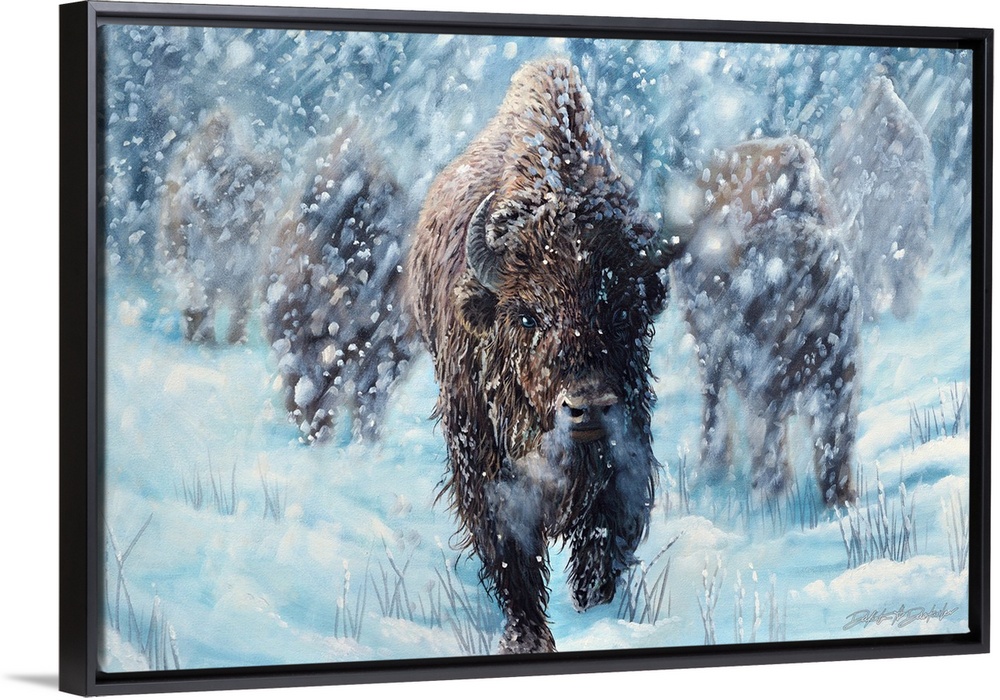 Art Blue Wall Art Powder Blue Dakota Daetwiler Four Seasons Winter Painting Western Wildlife Bison and Buffalo