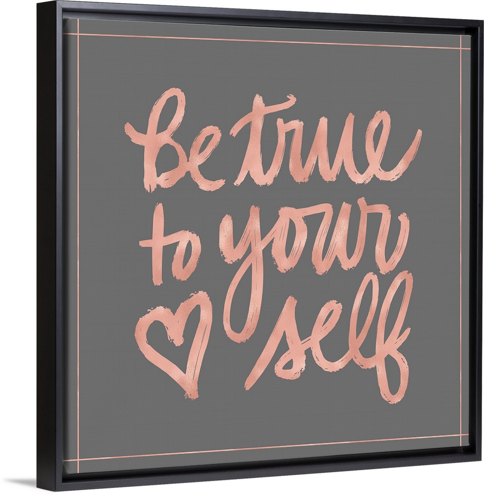 <p>"Be true to your self" in pink with a heart on a gray background.</p>