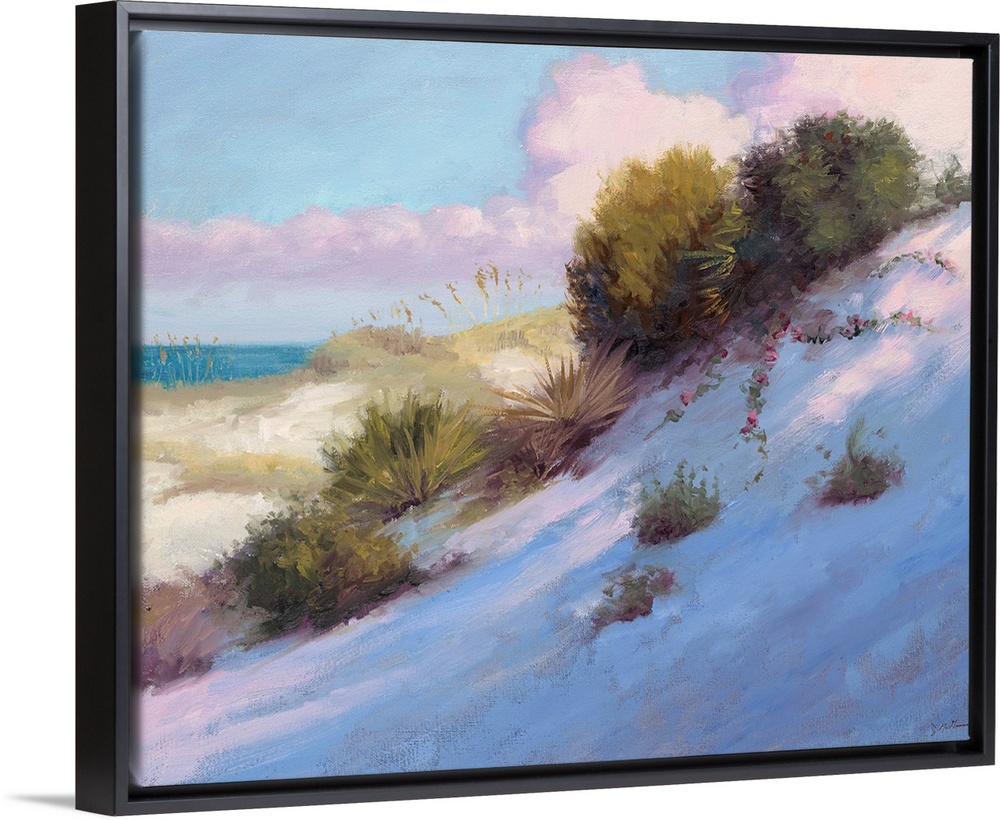 <p>Contemporary painting of beach grasses on a dune near the ocean.</p>