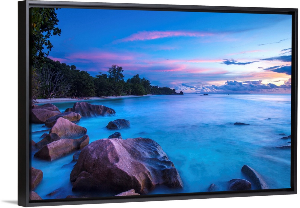 <p>Beach at sunset, La Digue, Seychelles.</p>