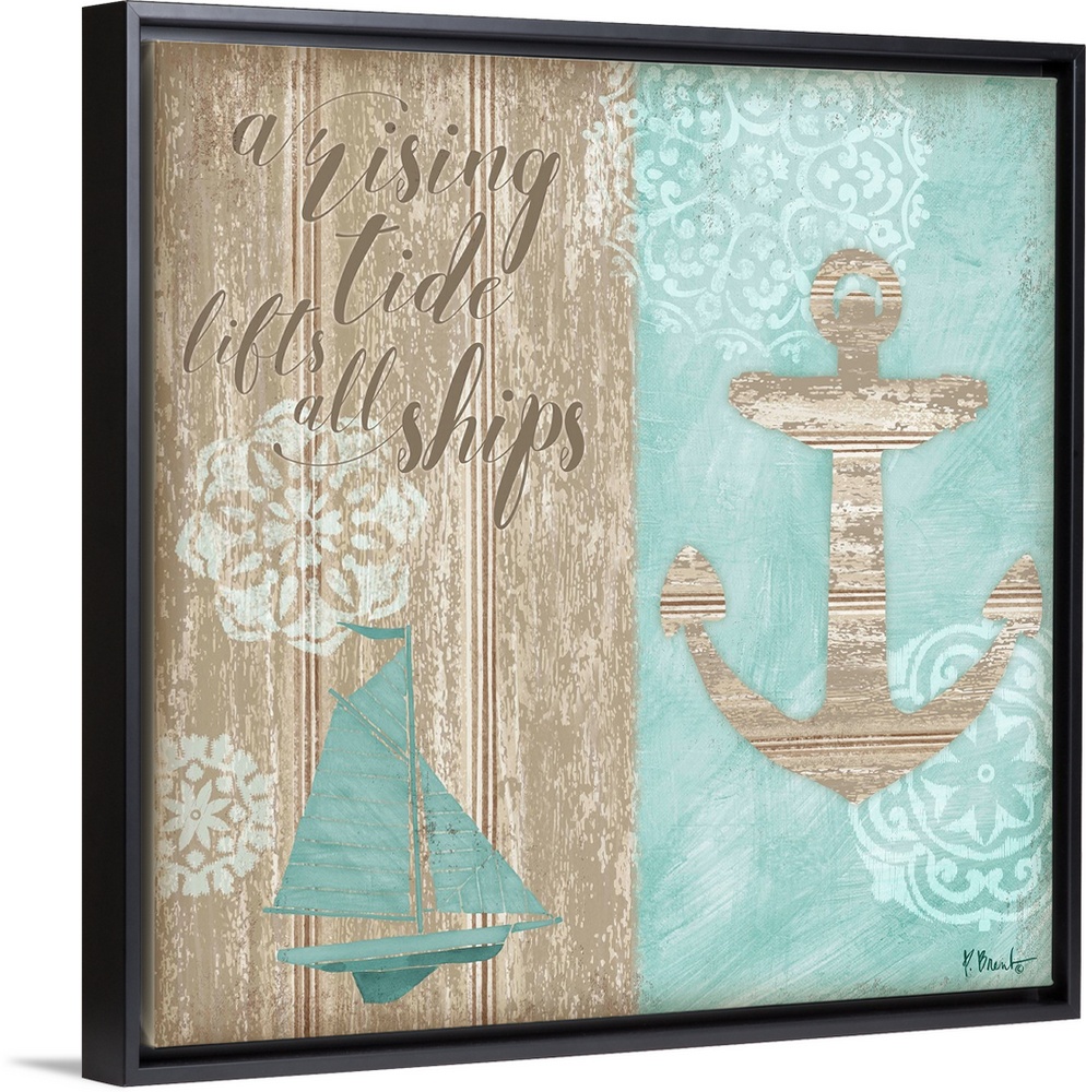 <p>"A Rising Tide Lifts All Ships" square beach decor.</p>