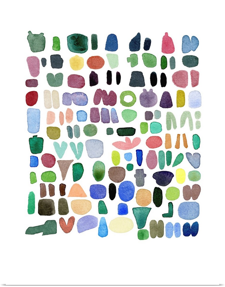 <p>A beautifully simple watercolor abstract of small shapes in complimentary colors on a white background.</p>