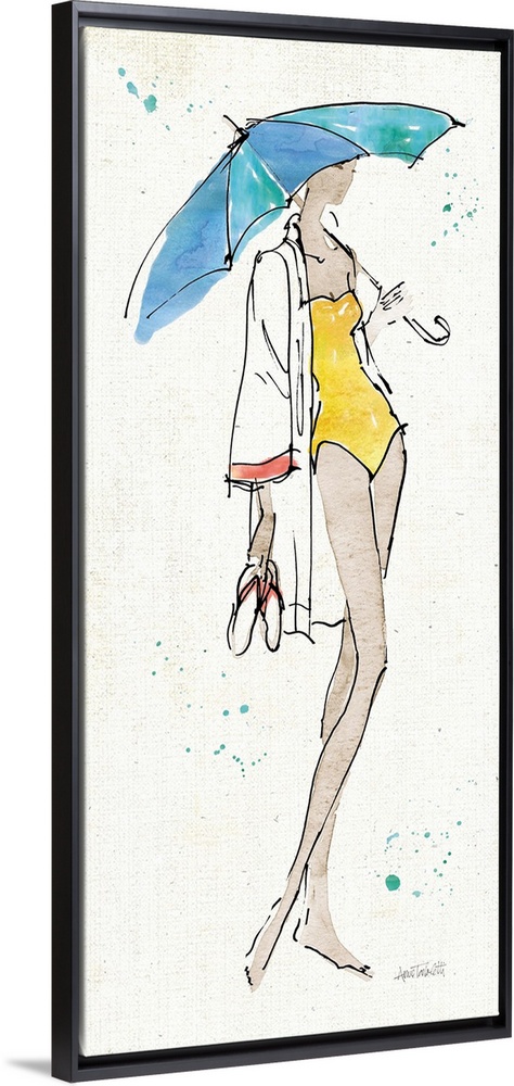 <p>Contemporary fashion sketch of a woman wearing beach attire.</p>
